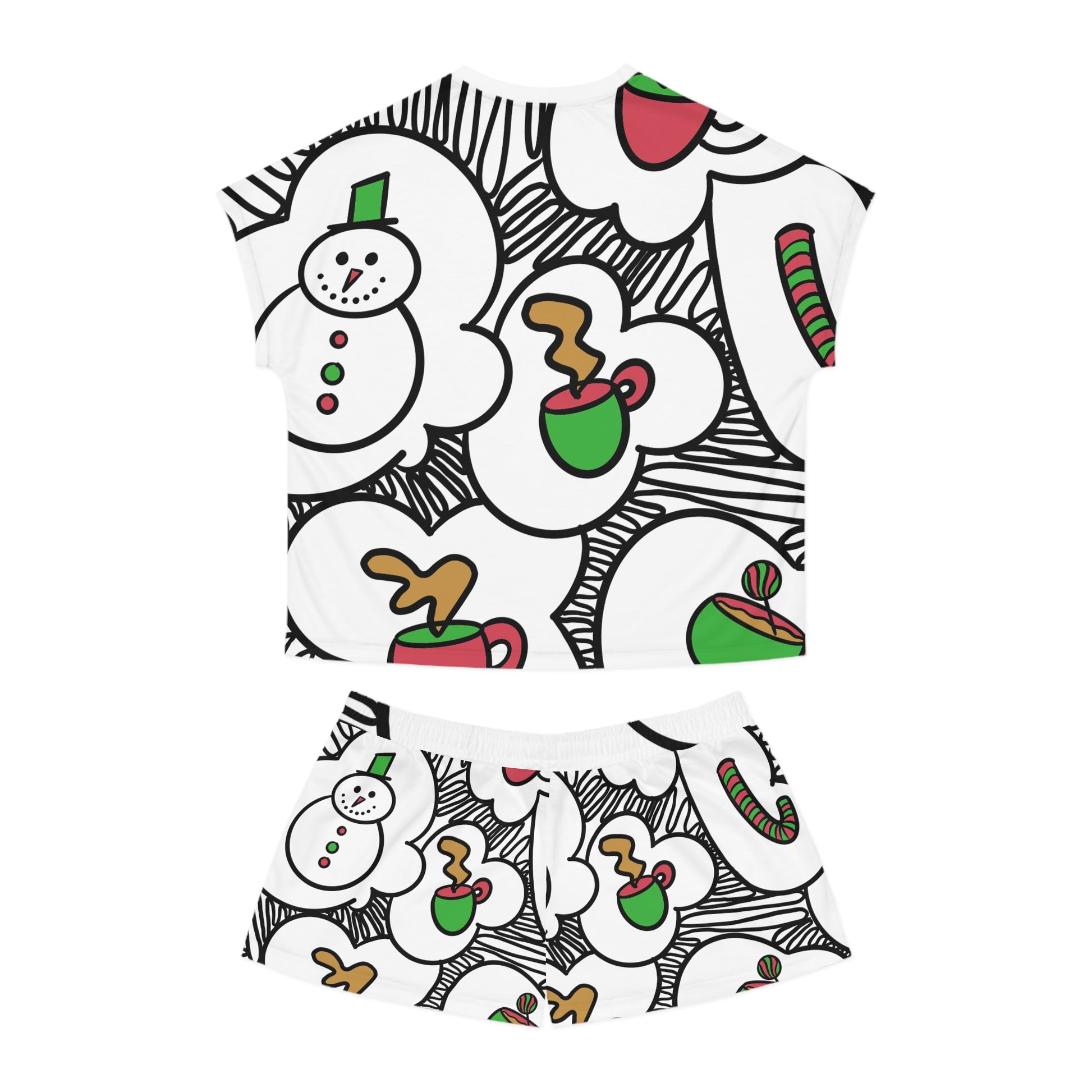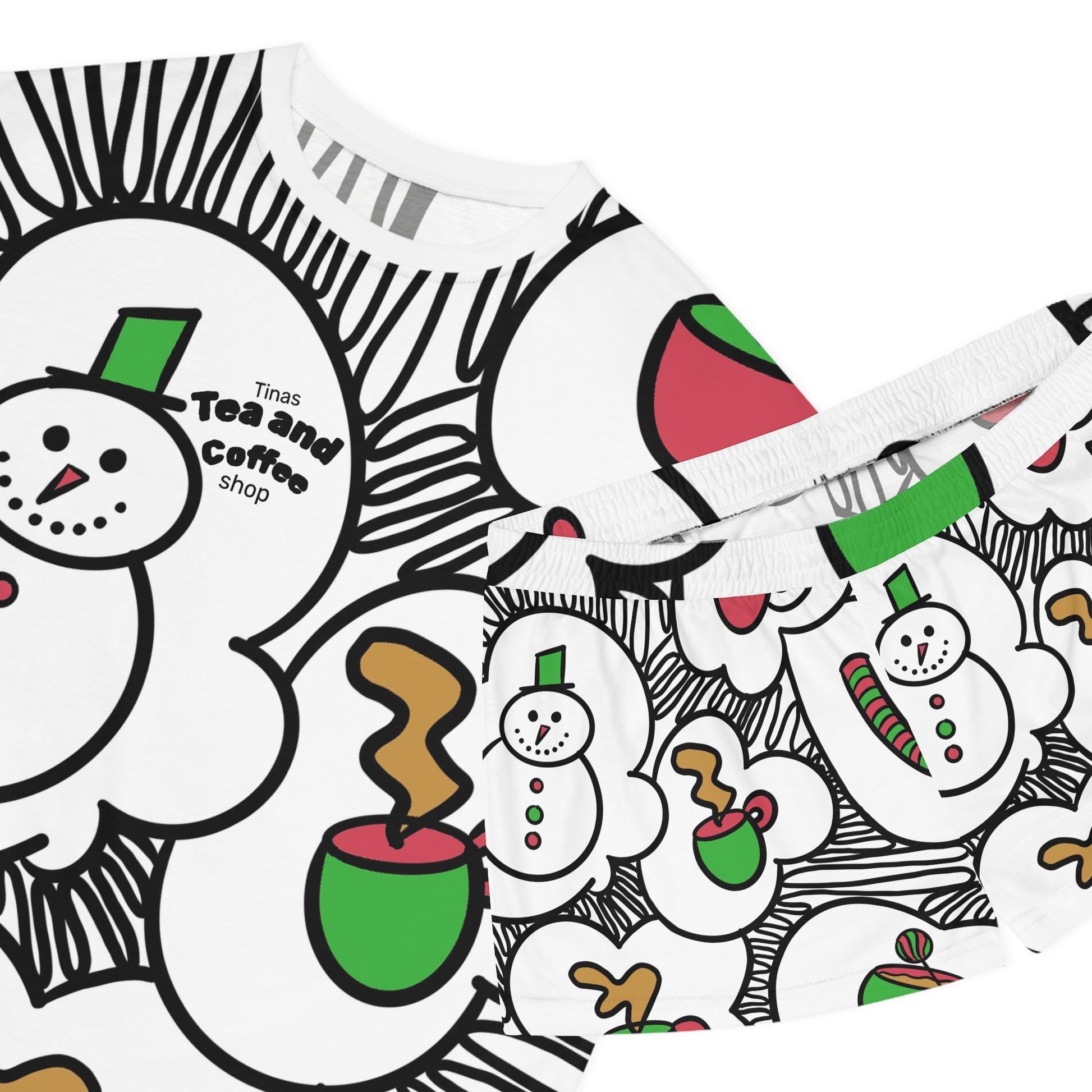 Tinas Festive Snowman Coffee Pattern Pajama Set | Short PJ Top and Shorts