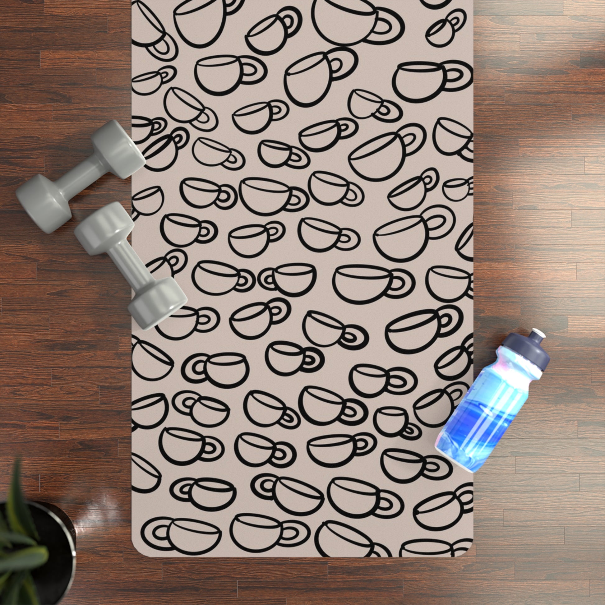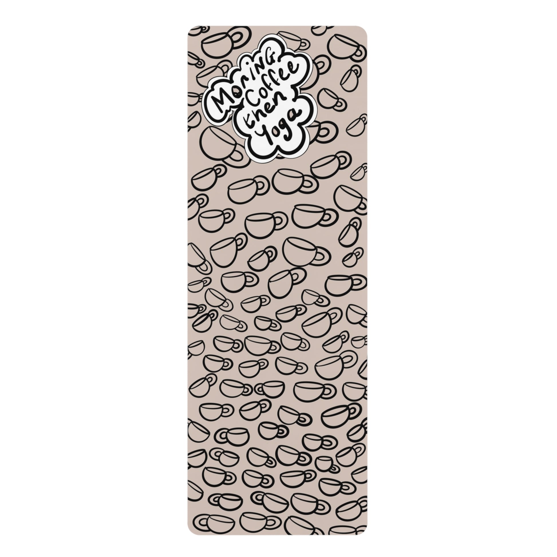 Yoga Mat — “Morning, Coffee, Cheer, Yoga” Coffee Cup Pattern